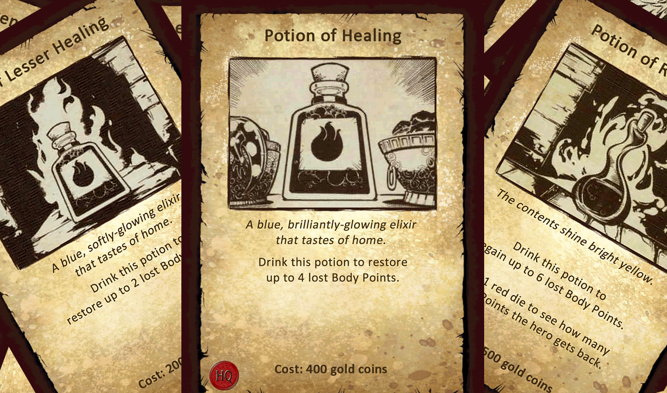 I found several issues with the various potion cards (Alchemy, Equipment, and Treasure).